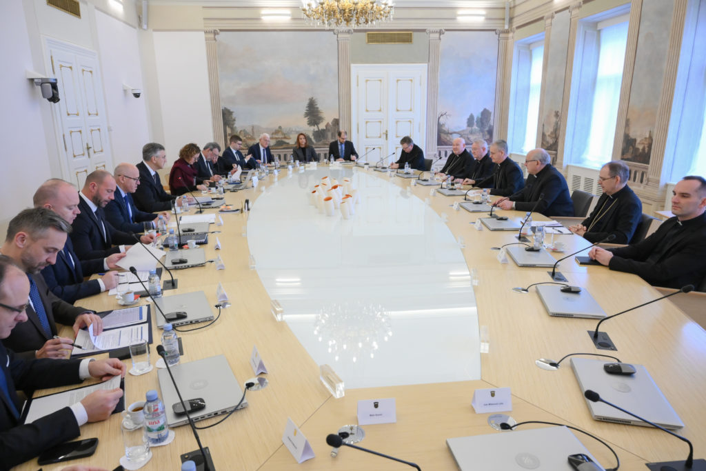Predsjednik Vlade Andrej Plenković i članovi Vlade održali su danas redoviti sastanak s članovima Stalnog vijeća Hrvatske biskupske konferencije, u Banskim dvorima u Zagrebu. Razgovorom o brojnim temama važnim za Katoličku Crkvu i za hrvatsko društvo općenito, potvrđen je i nastavljen kvalitetan dijalog između Vlade i Hrvatske biskupske konferencije.